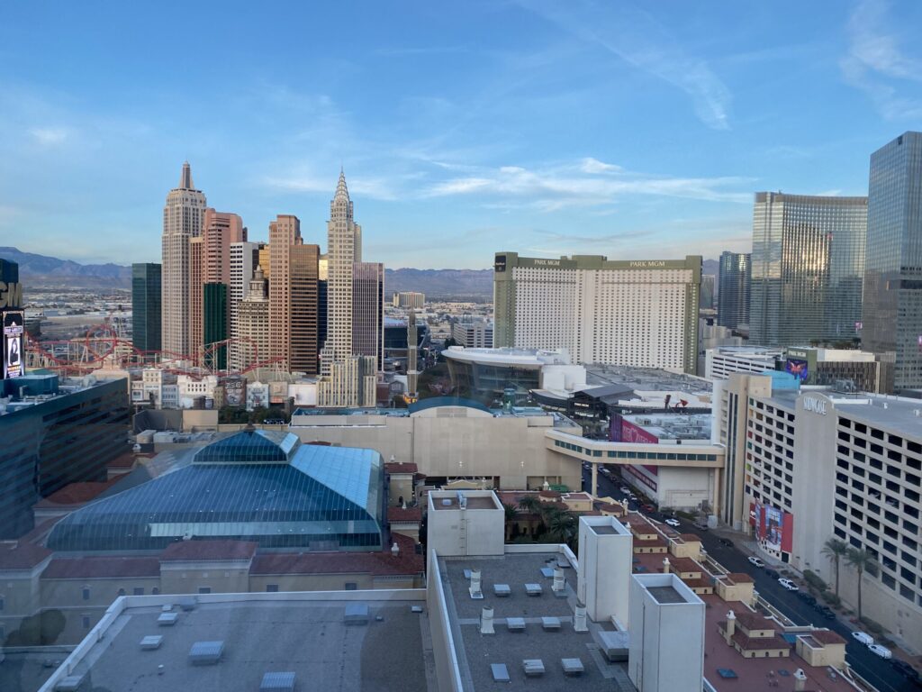 ストリップ通り側の眺望では、目の前にニューヨークをテーマにした「ニューヨーク・ニューヨーク」が見え、部屋にいながらラスベガスらしい景色を楽しめる点も魅力でした。