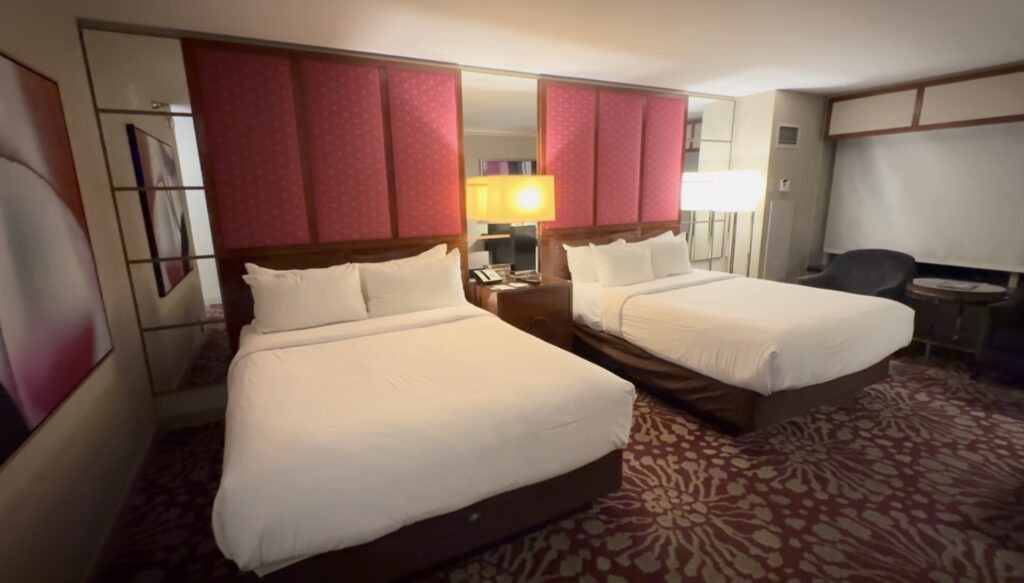 クイーンサイズのベッドが2台配置された、ラスベガスではスタンダードな部屋タイプで、